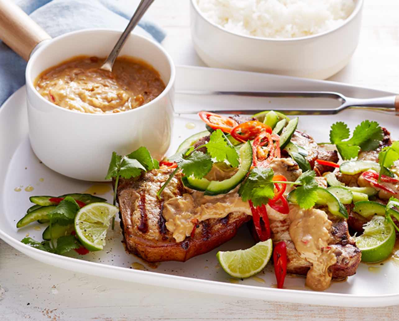 Pork chops with satay sauce